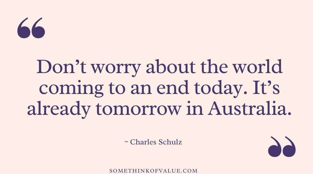 21. “Don’t worry about the world coming to an end today. It’s already tomorrow in Australia.” – Charles Schulz