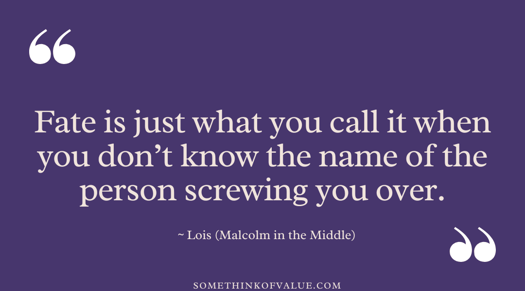 41. “Fate is just what you call it when you don’t know the name of the person screwing you over.” —Lois, Malcolm in the Middle
